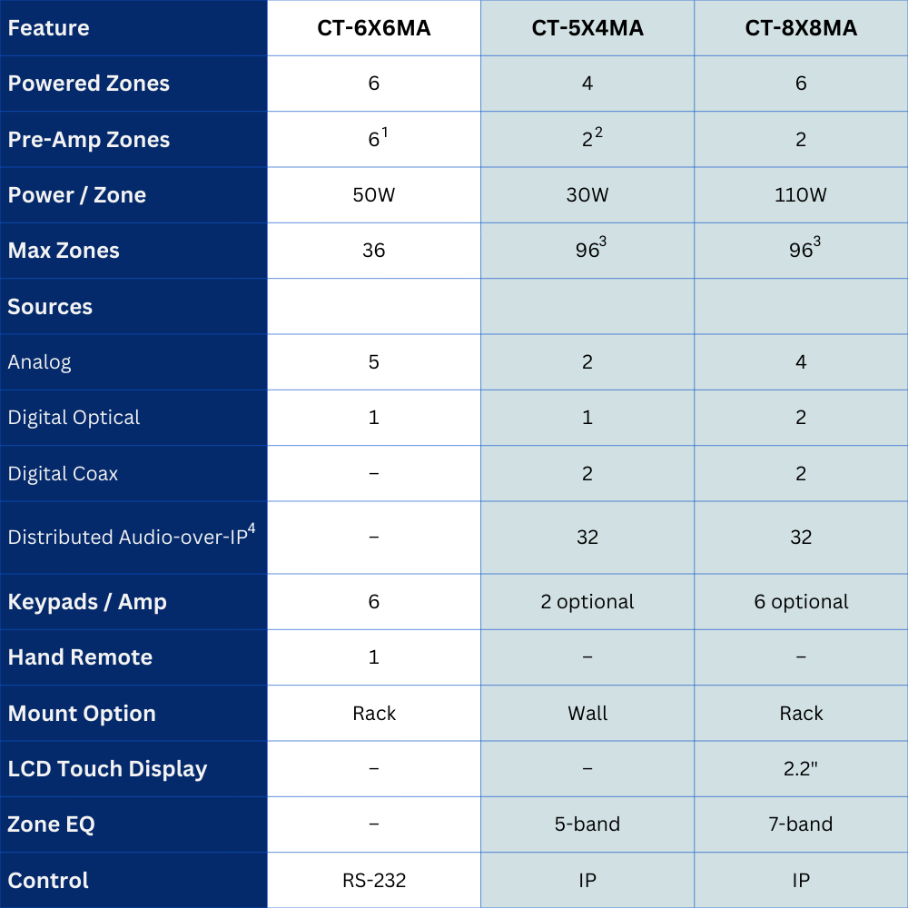 CasaTunes offers 3 matrix amplifier solutions, designed to meet the various needs of our customers.
